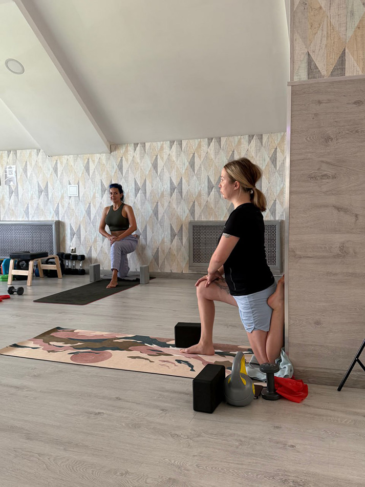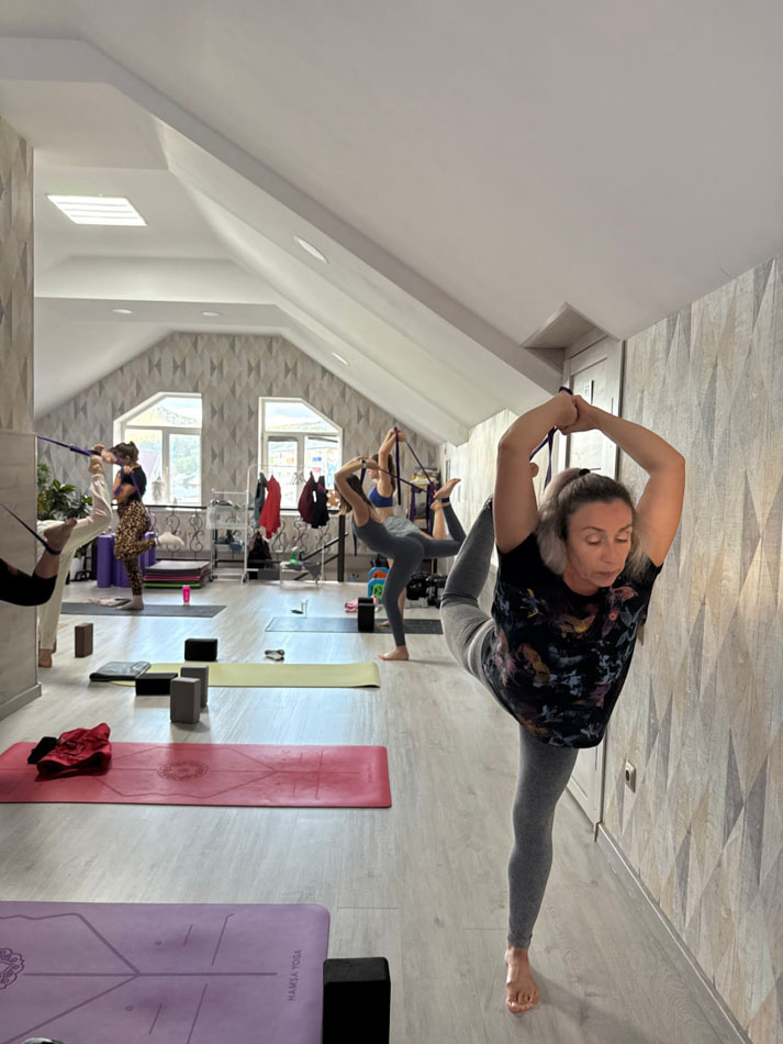 В студии есть всё что нужно для отличных тренировок: коврики, оборудование, грамотные тренеры и прекрасная атмосфера. Мы проводим занятия по хатха йоге, силовые тренировки, тренировки для тех, кто катается на горе, которые помогут качественному восстановлению.